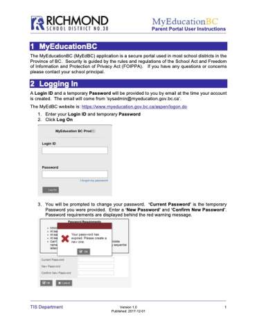 Parents with registered email address should have received an email from sysadmin@myeducation.gov.bc.ca with your login ID and temporary password. Instructions on how to login and navigate the Parent Portal is attached below.
